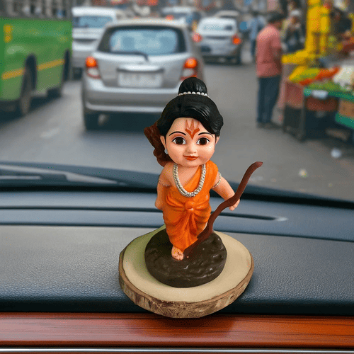 This beautifully crafted Ram Ji idol embodies the virtues of devotion, courage, and righteousness. Lord Ram is a symbol of dharma and an eternal source of inspiration, and this intricately designed idol is perfect for bringing his divine presence into your home or workspace. Its compact size ensures it fits perfectly in a pooja room, on a desk, or a car dashboard, while its exquisite detailing makes it visually captivating.