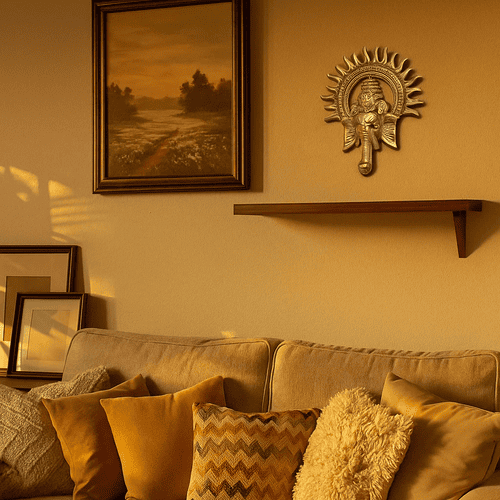 Placing Lord Ganesha on your wall, especially near the entrance or pooja room, is believed to create a shield of positivity around your home. As the Vighnaharta (Remover of Obstacles), His divine presence helps eliminate negative energy and welcomes good fortune, clarity, and peace into your surroundings.