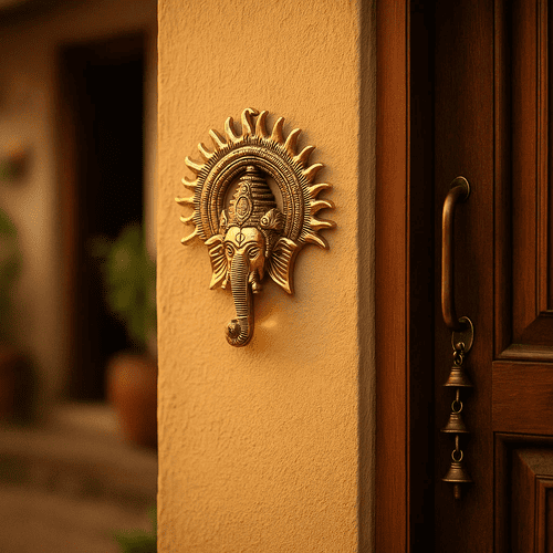 In Vastu and Hindu belief, placing a Ganesha image or idol at your home's entrance is believed to ward off negativity and attract auspiciousness. Lord Ganesha is always invoked at the beginning of any journey, making him the perfect guardian of your home.